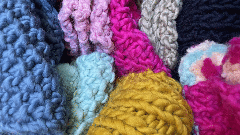 Amongst my stash of materials you’ll also fine lots of other natural products and they are vegan. I only use materials that are natural, which obviously includes wool, but plant based materials are also on my radar and I’m always looking out for new options. Currently my stash also includes pure cotton, recycled cotton, eucalyptus and bamboo fibres. All beautifully soft and create stunning products.
